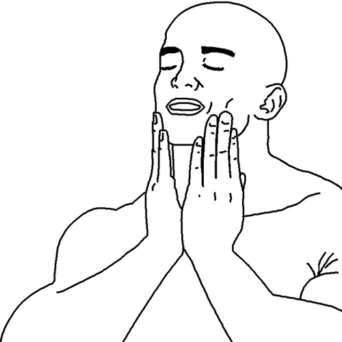 every reaction image since is a descendant of one or the other. gigachad. smug pepe. coomer. they all borrow this vocabulary of "face does the work, words don't." this one got there first with nothing but an MSPaint outline and a smile.